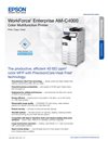 The WorkForce® Enterprise AM-C4000 colour MFP keeps productivity high, with a print speed of 40 ISO ppm† and a fast first page out. Powered by revolutionary PrecisionCore Heat-Free® technology, it’s engineered for remarkable reliability and provides outstanding image quality, along with a full suite of advanced security features. A compact and efficient inkjet workhorse, the AM-C4000 uses the least amount of floor space1 and features the lowest power consumption2 in its class, up to 45% lower vs. colour laser printers2. In addition, it supports convenient print management solutions. With its ability to print from Android™ and iOS® mobile devices3, and a recommended monthly print volume (MPV) of 6,000 to 60,000 pages, this high-productivity MFP has capabilities large workgroups and departments need to keep business moving.