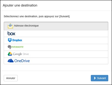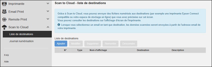 - Déroulez Scan to Cloud, puis sélectionnez Liste de destinations. Cliquez sur Ajouter.