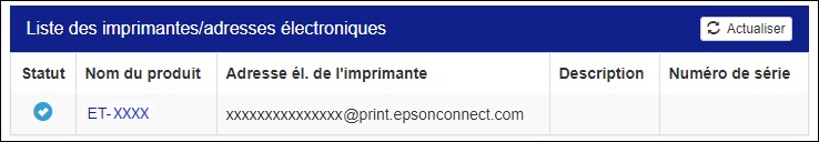 - Connectez-vous à votre compte Epson Connect. Au besoin, sélectionnez votre produit dans votre Liste des imprimantes/adresses électroniques.