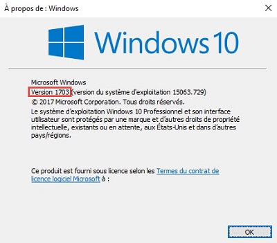 1. Pour déterminer la version de Windows que vous exécutez, cliquez sur Démarrer ou sur le bouton Windows et tapez : « winver ». La version sera affichée à l'écran comme indiqué ci-dessous (encadrée par le rectangle en rouge) :