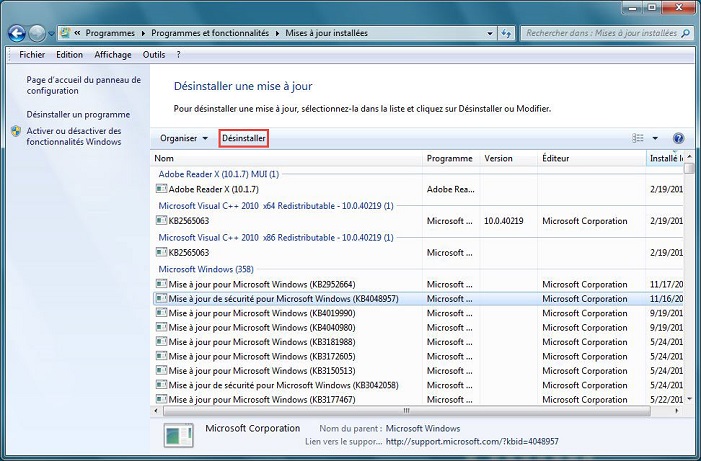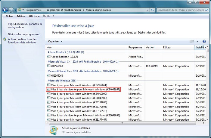 - Désinstallez la mise à jour Windows publiée le 14 novembre 2017.
