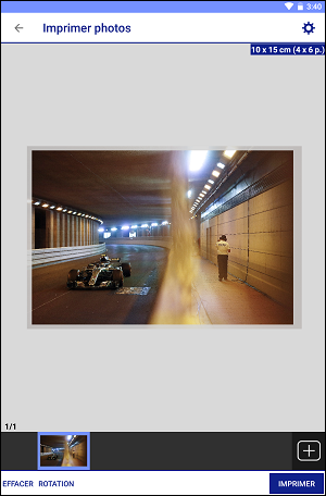 - Pour naviguer d’une photo à l’autre dans le travail d’impression, touchez les miniatures dans la partie inférieure de l’écran ou faites glisser la photo vers la gauche ou la droite.