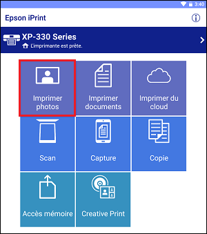 - Touchez Imprimer photos à l’écran d’accueil de l’application.