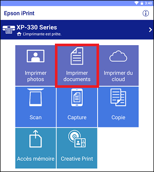Vous pouvez imprimer des fichiers JPG, GIF, TIFF, BMP et PNG depuis l’application Epson iPrint.
