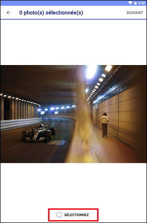 Touchez Sélectionnez pour ajouter la photo à votre travail d’impression.