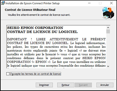 Impression Slack : Configurer Epson Connect via le panneau de commande