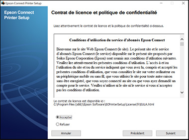 - Sélectionnez Démarrer la configuration. La fiche d’enregistrement Epson Connect s’imprime.