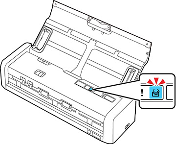 - Faites glisser le loquet du capot afin d'ouvrir le scanner.