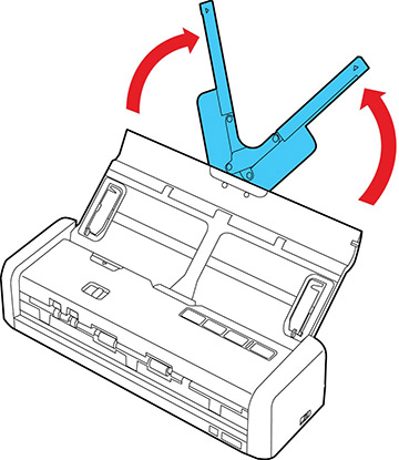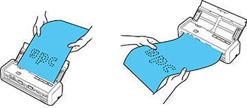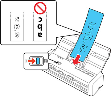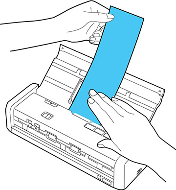 - Guidez le reçu dans le chargeur automatique de documents et soutenez-le lors de l'alimentation dans le scanner. (Vous pouvez continuer d'alimenter des reçus dans le scanner, un à un, lorsque le scanner est en mode d'alimentation automatique.)