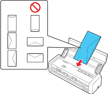 Vous pouvez charger des enveloppes ou des originaux épais (comme des cartes postales ou des cartes professionnelles) dans le bac d'alimentation. Assurez-vous que les originaux satisfont aux caractéristiques pour les documents spéciaux avant de les charger.Remarque : Lorsque vous numérisez des originaux spéciaux, désactivez le paramètre Double alimentation détectée de l'onglet Paramètres principaux sous Epson Scan 2.
