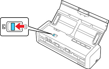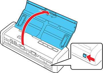 - Faites glisser le loquet du capot afin d'ouvrir le scanner.