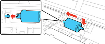 - Faites glisser le rouleau d'alimentation vers la droite et soulevez-le afin de le retirer
