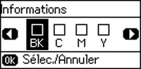 - Appuyez sur les boutons fléchés de gauche ou de droite pour sélectionner le réservoir que vous avez rempli et appuyez sur le bouton OK pour confirmer. Répétez la procédure pour tous les réservoirs de couleur que vous avez remplis.