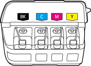 Avant de commencer, assurez-vous d'avoir des bouteilles d'encre de remplacement à portée de main et lisez les mesures de sécurité pour la manipulation de l'encre.Vous pouvez continuer d'utiliser le produit même si un ou plusieurs réservoirs ne sont pas remplis jusqu'à la limite. Cependant, pour un suivi plus précis des niveaux d'encre, remplissez les réservoirs jusqu'à la ligne la plus haute. Pour des résultats d'impression optimaux, remplissez les réservoirs d'encre jusqu'à la ligne la plus haute au moins une fois par année.