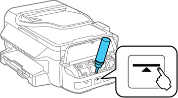 - Remplissez le réservoir avec la bonne couleur d'encre jusqu'à la ligne du haut.