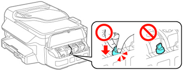 - S'il reste encore de l'encre dans la bouteille une fois le remplissage terminé, replacez bien l'embout sur le bouchon verseur et rangez la bouteille debout pour un usage ultérieur.