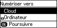 - Appuyez sur le bouton fléché du haut ou du bas, sélectionnez Numériser et appuyez sur le bouton OK. Les options de numérisation s'affichent :