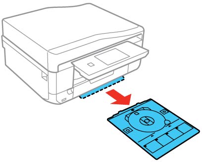 N'insérez pas le plateau CD/DVD lorsque le produit imprime, copie ou effectue d'autres opérations. Sinon, votre produit risque d'être endommagé, ou la surface du CD/DVD pourrait devenir sale ou rayée.Remarque : Si vous utilisez des disques dont la zone d'impression s'étend jusqu'à 4 mm (0,16 po) du trou central, il se peut que vous deviez ajuster le réglage du diamètre interne en utilisant le panneau de commande ou le logiciel Epson Print CD.