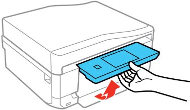 - Insérez le plateau dans le logement au-dessus du plateau de sortie tel qu'illustré.