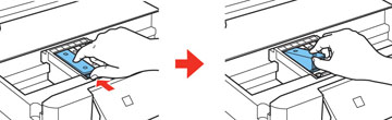 - Retirez toutes les cartouches d'encre en appuyant sur la languette bleue pour les déverrouiller. Ensuite, soulevez les cartouches d'encre afin de les retirer.