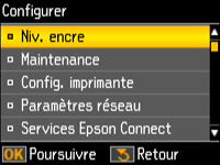 d'accueil, si nécessaire. - Appuyez sur le bouton fléché de gauche ou de droite pour sélectionner Configurer et appuyez sur le bouton OK. L'écran suivant s'affiche :