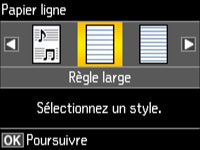 - Appuyez sur le bouton fléché du haut ou du bas pour sélectionner Papier ligne et appuyez sur le bouton OK.