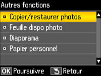 d'accueil, si nécessaire. - Appuyez sur le bouton fléché de gauche ou de droite pour sélectionner Plus de fonctions et appuyez sur le bouton OK.