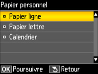- Appuyez sur le bouton fléché du haut ou du bas pour sélectionner Papier personnel, puis appuyez sur le bouton OK.