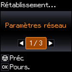 - Appuyez sur les boutons fléchés pour sélectionner Rétablir param par déf., puis appuyez sur le bouton OK. L'écran suivant s'affiche :