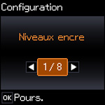 d'accueil, si nécessaire. - Appuyez sur les boutons fléchés pour sélectionner Configuration et appuyez sur le bouton OK. L'écran suivant s'affiche :