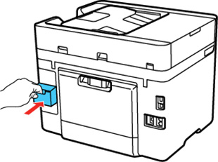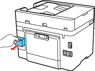 - Agrippez la boîte de maintenance comme indiqué et retirez-la de son emplacement.