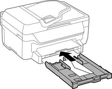 Pour éviter des problèmes d'alimentation, assurez-vous que vous ne chargez pas trop d'enveloppes dans le bac papier. - Faites glisser les guide-papier contre les enveloppes, sans trop serrer.