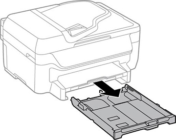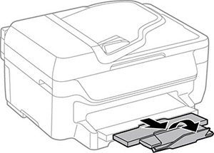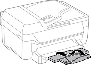 - Tirez la rallonge du plateau de sortie vers l'extérieur et levez le butoir.