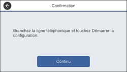- Branchez votre ligne téléphonique et sélectionnez Continu.