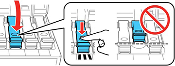Vous pouvez continuer d'utiliser le produit même si un ou plusieurs réservoirs ne sont pas remplis jusqu'à la limite. Cependant, pour un suivi plus précis des niveaux d'encre, remplissez les réservoirs jusqu'à la ligne la plus haute.