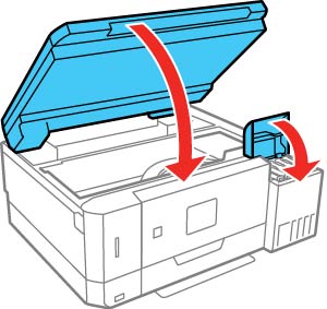- Fermez le couvercle des réservoirs, puis abaissez l'unité du scanner.