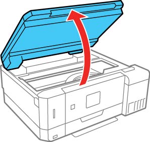 - Ouvrez le couvercle des réservoirs d'encre, puis retirez le couvercle du réservoir d'encre que vous comptez remplir.