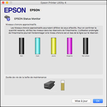 Remarque : Pour mettre à jour ou rafraîchir les niveaux d'encre affichés, cliquez sur Mise à jour.