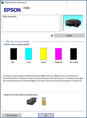 - Sélectionnez EPSON Status Monitor. Une fenêtre comme celle-ci s'affiche :