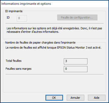 Remarque : Le nombre de feuilles ne s'affiche que si Epson Status Monitor 3 est activé.