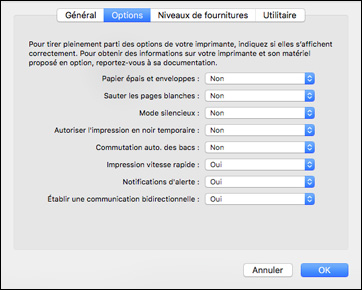 Remarque : Pour utiliser cette fonction, Epson Status Monitor doit être activé.
