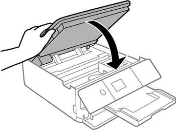- Assurez-vous que la tête d'impression est en position de remplacement de cartouche d'encre. Vous devriez voir les onglets bleus sur les cartouches d'encre. Si vous ne pouvez pas voir les onglets, fermez l'unité du scanner et répétez les étapes précédentes.