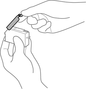 Ne touchez pas aux zones illustrées ici. Sinon, vous risquez de compromettre l'impression et le fonctionnement normal de l'imprimante. Ne secouez pas les cartouches d’encre après les avoir déballées, sinon l’encre risque de fuir. - Retirez le bouchon de la cartouche.