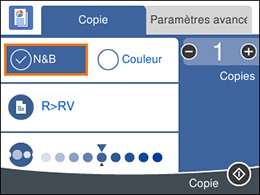 d'accueil, si nécessaire. - Sélectionnez Copie. Un écran comme celui-ci s'affiche :