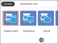 - La fonction Dispos mém sauvegarde votre fichier numérisé sur un dispositif USB ou une carte mémoire et vous permet de sélectionner le format, la qualité et d'autres paramètres du fichier.
