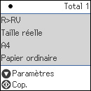 - Appuyez sur le bouton OK pour voir les paramètres d'impression pour les copies. L'écran suivant s'affiche :