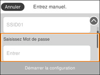 Remarque : Le nom du réseau et le mot de passe sont sensibles à la casse. Assurez-vous de saisir correctement les lettres majuscules, les lettres minuscules et les caractères numériques ou spéciaux.