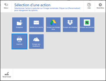 - Sélectionnez une option de numérisation. Selon votre produit, une ou plusieurs options de numérisation pourraient être disponibles. L'original est numérisé. Lorsque la numérisation est terminée, l'écran suivant s'affiche :