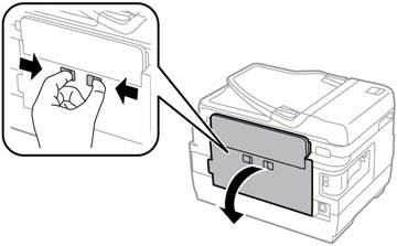 Ne touchez pas à la puce verte sur la boîte de maintenance. - Appuyez sur les languettes et ouvrez le couvercle arrière.