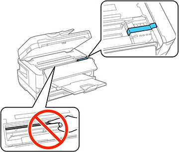 - Fixez le support de cartouches d'encre au boîtier à l'aide de ruban adhésif comme illustré.